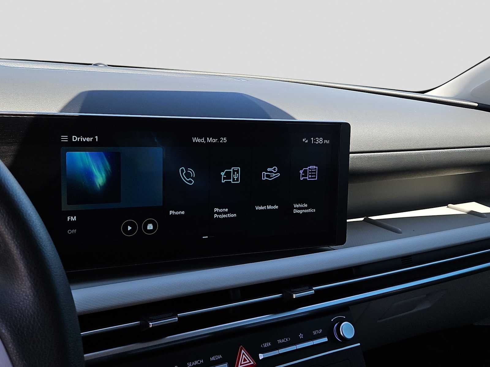 - Radio: AM/FM/HD Audio System -inc: 12.3" color touchscreen display, 6 speakers, SiriusXM satellite radio system (3-month trial subscription), wireless Apple CarPlay and Android Auto integration, controller OTA update capability, Blue Link connected car system and USB connectivity