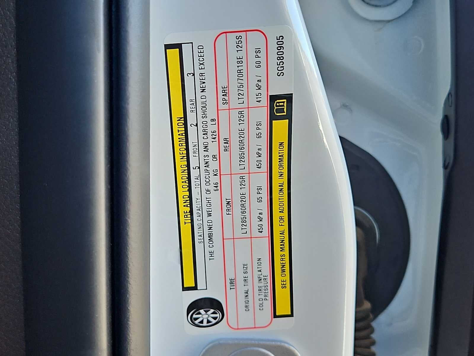 - Front Tire Size: LT285/60SR20